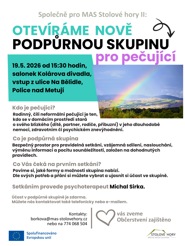 Pokud pečujete a zajímá vás, jak taková skupina funguje, můžete se přijít nezávazně podívat.